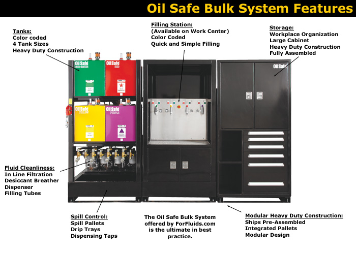 El sistema de almacenamiento a granel del centro de trabajo de lubricación es como una sala de lubricación instantánea. La estación dispensadora central codificada por colores facilita el llenado con el lubricante correcto. Hay un armario de almacenamiento debajo de la estación dispensadora o, si cambia a carretes de manguera, se guardan convenientemente en el interior. Cuenta con codificación de colores, grifos dispensadores presurizados, contención de derrames incorporada y una bomba/filtro separado para cada tanque que proporciona filtración de 3 vías (filtros durante el llenado, recirculación (bucle de riñón) y dispensación). Viene estándar con un filtro Beta 2000 de 7 micras, otras clasificaciones disponibles. Se envía ensamblado y prácticamente listo para usar.