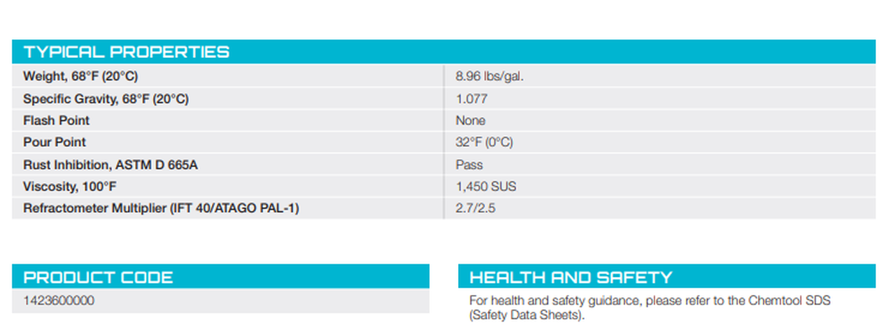 • Se presenta la oportunidad de reducir los costos de los equipos de protección y / o el seguro contra incendios • Produce un enfriamiento lento de la fase «C» debido a su ingrediente de mayor peso molecular. El principal requisito de maquillaje es el agua perdida por evaporación