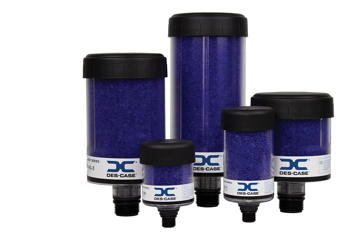 Los respiradores desecantes Des-Case Extended Series® combinan los materiales confiables y el diseño de nuestros respiradores estándar con las válvulas de retención de nuestros respiraderos VentGuard™ e HydroGuard®, además de una nueva función de reducción de neblina de aceite, mayores flujos de aire y más del doble de desecante. Estos respiradores desecantes duraderos y de alto flujo de aire son ideales para parques de tanques y aplicaciones grandes o remotas.