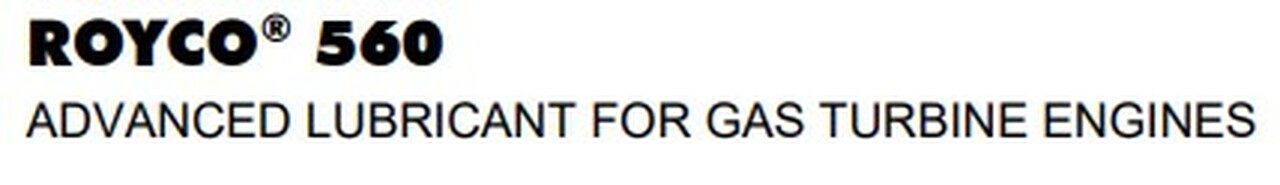 ROYCO 560 ha sido aprobado para su uso en la mayoría de los motores de turbina de gas de aviación que requieren fluidos aprobados Mil-PRF-23699. Además, ROYCO 560 está aprobado para su uso en turbinas de gas industriales fabricadas por la División Solar de Caterpillar, General Electric, Pratt & Whitney, Allison, Rolls Royce y la mayoría de los demás. La información específica de aprobación del motor se puede obtener a pedido. ROYCO 560 está calificado para MIL-SPEC: MIL-PRF-23699F Grade HTS.