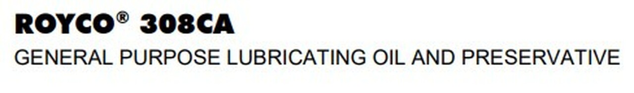 ROYCO 308CA es un aceite lubricante a base de aceite mineral altamente refinado mezclado con aditivos modernos para inhibir la oxidación y la corrosión y mejorar las características de desplazamiento del agua. ROYCO 308CA está designado como un inhibidor de óxido P-9.