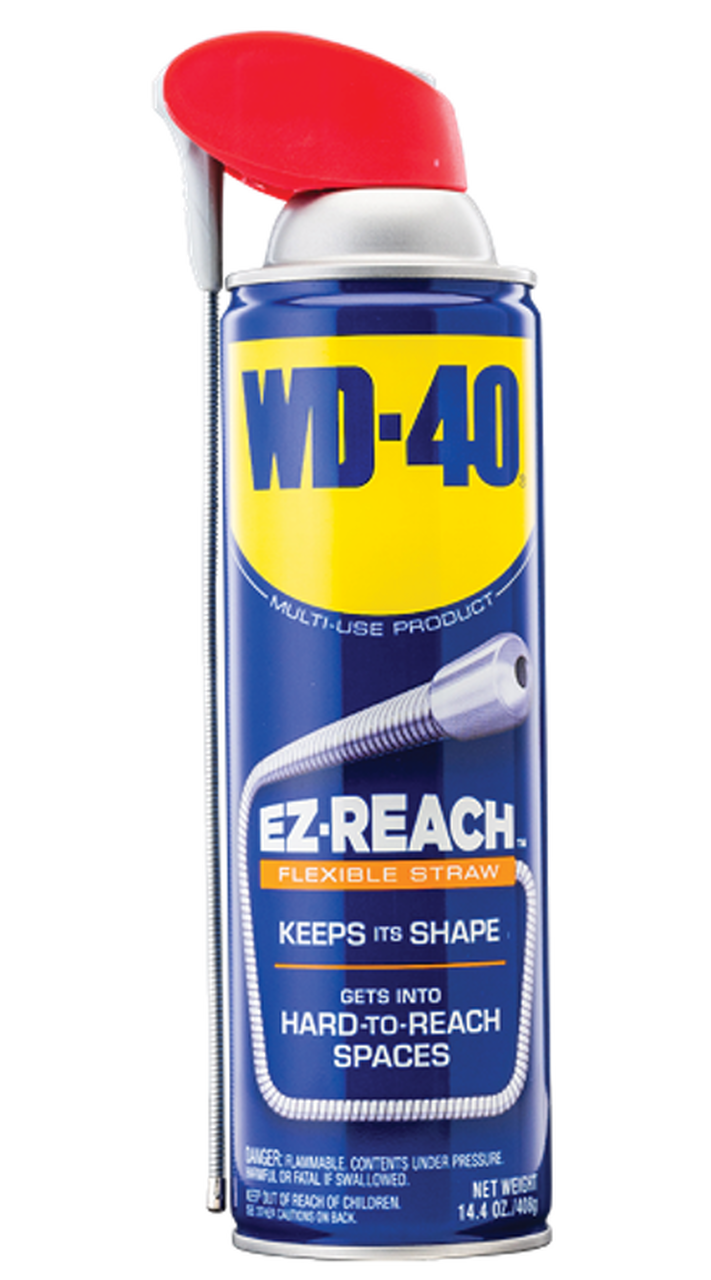 El producto multiuso WD-40 lubrica piezas móviles como bisagras, ruedas, rodillos, cadenas y engranajes. Protege contra el óxido y la corrosión en artículos como herramientas y equipos deportivos. Penetra para liberar piezas corroídas atascadas como tuercas, pernos, válvulas y cerraduras. Elimina rápidamente adhesivos, corrosión y pintura. Desplaza la humedad para restaurar equipos inundados de agua, como motores, bujías y herramientas eléctricas.